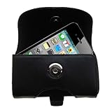 Horizontal Black Leather Case for the Apple iPhone 4 with both a belt clip and loop option – a Gomadic design